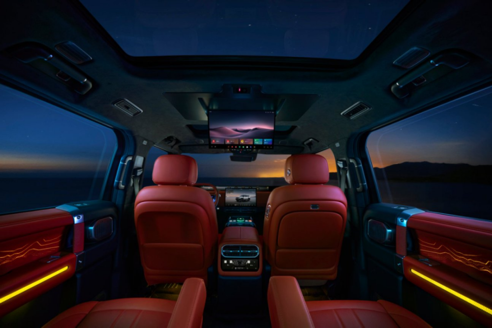 For extreme environment support, the vehicle includes satellite communications, onboard oxygen supply, AED medical kits, mosquito-repellent fragrance, and hidden insect screens – all designed to safeguard users during expeditions in plateaus, deserts, and remote areas.